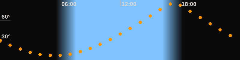 | Höchster Stand (Kulmination) | 17:21 Uhr (h = 85,6°) |