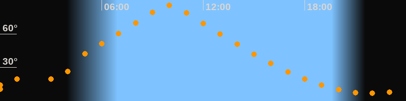 | Höchster Stand (Kulmination) | 09:58 Uhr (h = 85,6°) |