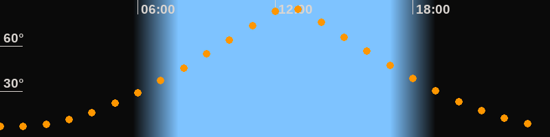 | Höchster Stand (Kulmination) | 12:35 Uhr (h = 85,6°) |