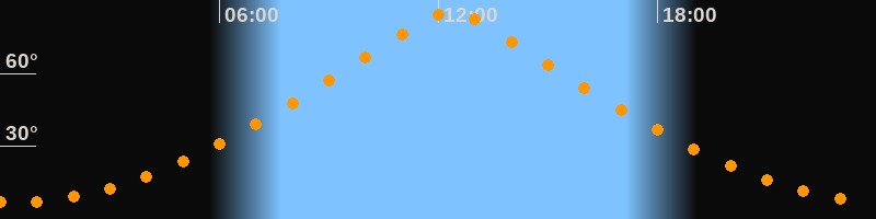 | Höchster Stand (Kulmination) | 12:21 Uhr (h = 85,6°) |