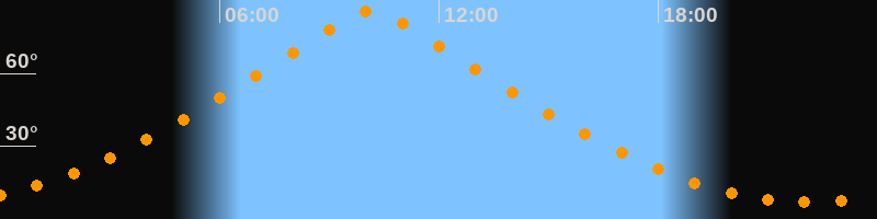 | Höchster Stand (Kulmination) | 10:08 Uhr (h = 85,6°) |