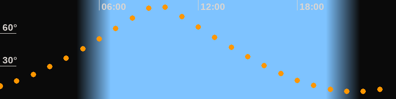 | Höchster Stand (Kulmination) | 09:33 Uhr (h = 85,6°) |