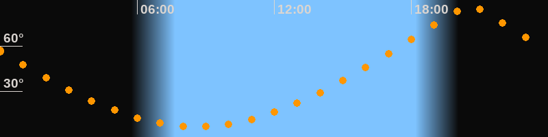 | Höchster Stand (Kulmination) | 20:35 Uhr (h = 85,6°) |