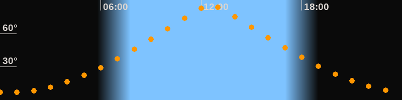 | Höchster Stand (Kulmination) | 12:34 Uhr (h = 85,6°) |