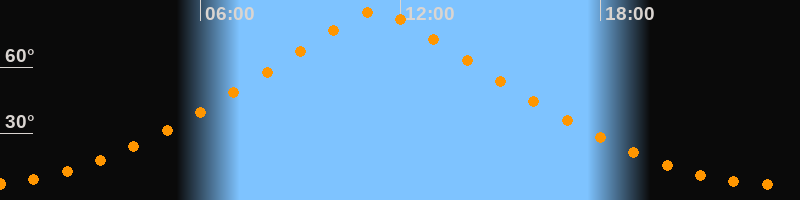 | Höchster Stand (Kulmination) | 11:16 Uhr (h = 85,6°) |