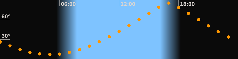 | Höchster Stand (Kulmination) | 16:58 Uhr (h = 85,6°) |