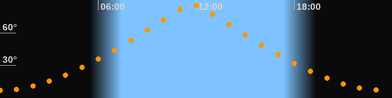 | Höchster Stand (Kulmination) | 11:45 Uhr (h = 85,6°) |