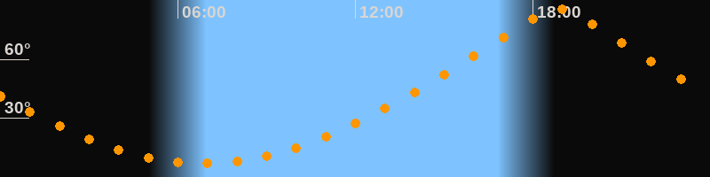 | Höchster Stand (Kulmination) | 18:51 Uhr (h = 85,6°) |