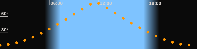 | Höchster Stand (Kulmination) | 11:37 Uhr (h = 85,6°) |