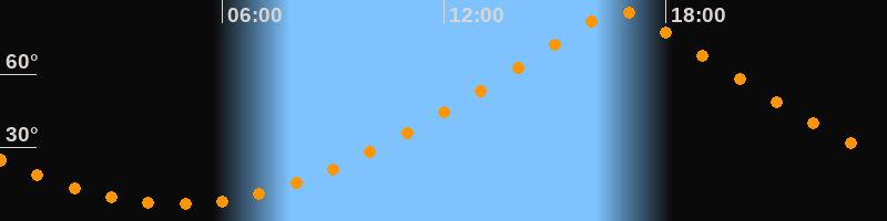 | Höchster Stand (Kulmination) | 16:44 Uhr (h = 85,6°) |