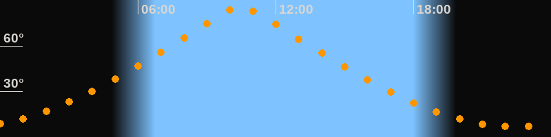 | Höchster Stand (Kulmination) | 10:27 Uhr (h = 85,6°) |