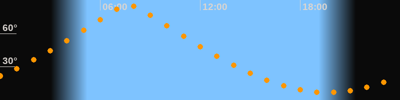 | Höchster Stand (Kulmination) | 07:42 Uhr (h = 85,6°) |