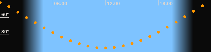 | Höchster Stand (Kulmination) | 23:54 Uhr (h = 85,6°) |