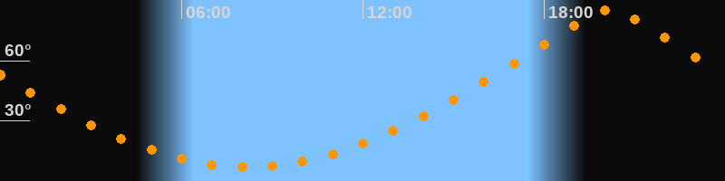 | Höchster Stand (Kulmination) | 20:10 Uhr (h = 85,6°) |