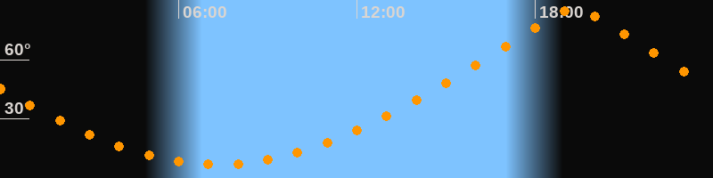 | Höchster Stand (Kulmination) | 19:19 Uhr (h = 85,6°) |