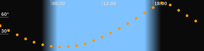 | Höchster Stand (Kulmination) | 19:15 Uhr (h = 85,6°) |