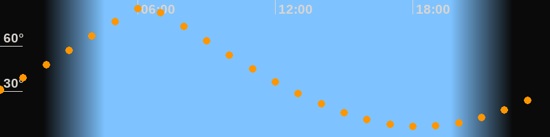 | Höchster Stand (Kulmination) | 06:20 Uhr (h = 85,6°) |