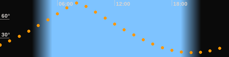 | Höchster Stand (Kulmination) | 08:07 Uhr (h = 85,6°) |