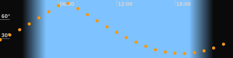 | Höchster Stand (Kulmination) | 06:45 Uhr (h = 85,6°) |