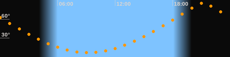 | Höchster Stand (Kulmination) | 21:11 Uhr (h = 85,6°) |