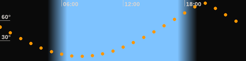 | Höchster Stand (Kulmination) | 19:52 Uhr (h = 85,6°) |
