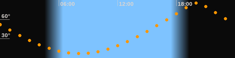 | Höchster Stand (Kulmination) | 20:05 Uhr (h = 85,6°) |