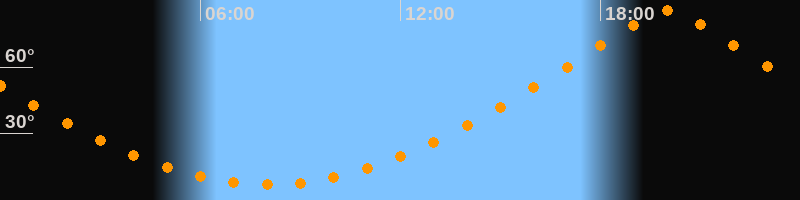 | Höchster Stand (Kulmination) | 20:01 Uhr (h = 85,6°) |