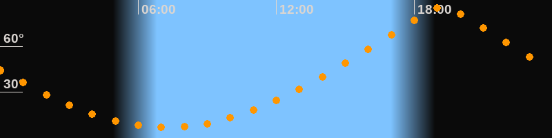 | Höchster Stand (Kulmination) | 19:14 Uhr (h = 85,6°) |