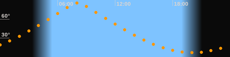 | Höchster Stand (Kulmination) | 08:06 Uhr (h = 85,6°) |