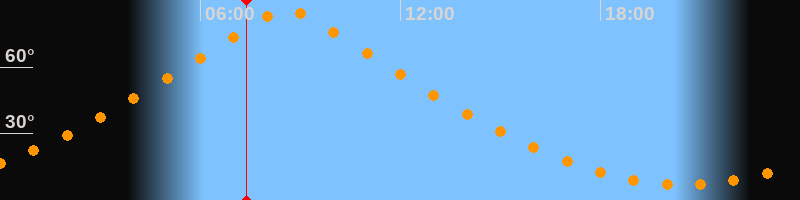 | Höchster Stand (Kulmination) | 08:36 Uhr (h = 85,7°) |