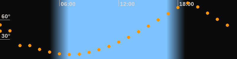 | Höchster Stand (Kulmination) | 19:03 Uhr (h = 85,7°) |