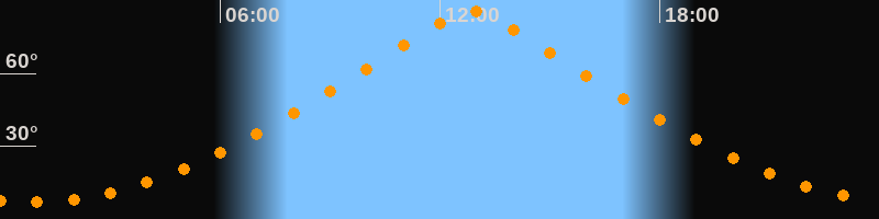 | Höchster Stand (Kulmination) | 12:50 Uhr (h = 85,7°) |
