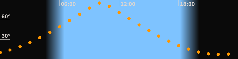 | Höchster Stand (Kulmination) | 10:08 Uhr (h = 85,7°) |