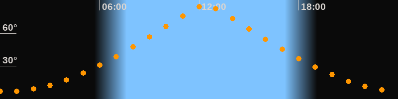 | Höchster Stand (Kulmination) | 12:23 Uhr (h = 85,7°) |