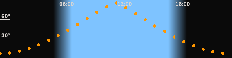 | Höchster Stand (Kulmination) | 11:52 Uhr (h = 85,7°) |
