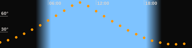 | Höchster Stand (Kulmination) | 09:55 Uhr (h = 85,7°) |