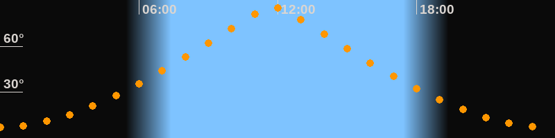 | Höchster Stand (Kulmination) | 11:47 Uhr (h = 85,7°) |