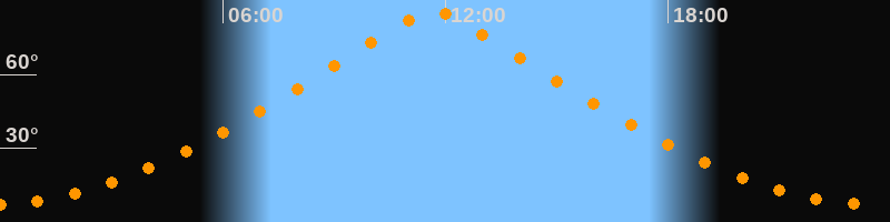 | Höchster Stand (Kulmination) | 11:40 Uhr (h = 85,7°) |