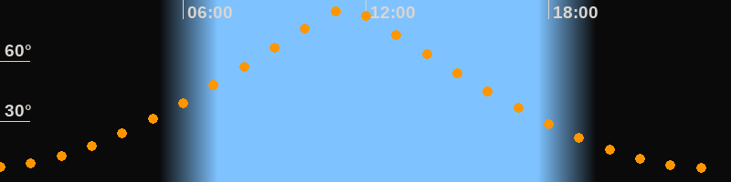 | Höchster Stand (Kulmination) | 11:20 Uhr (h = 85,7°) |