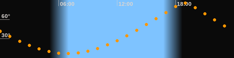 | Höchster Stand (Kulmination) | 18:53 Uhr (h = 85,7°) |