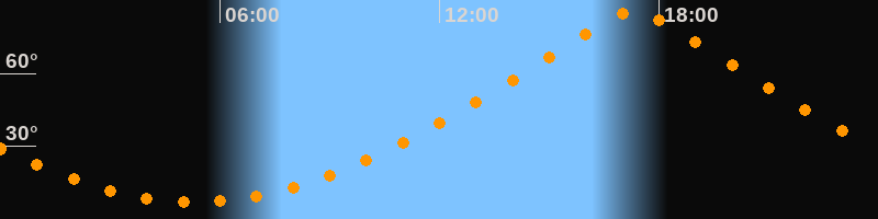 | Höchster Stand (Kulmination) | 17:19 Uhr (h = 85,7°) |