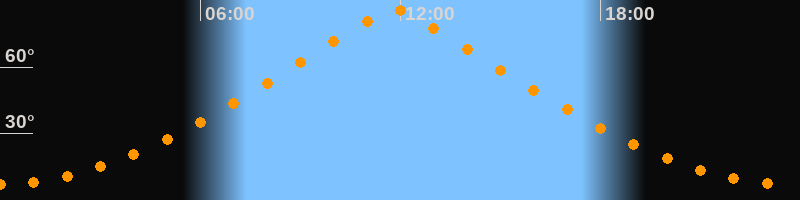 | Höchster Stand (Kulmination) | 11:49 Uhr (h = 85,7°) |