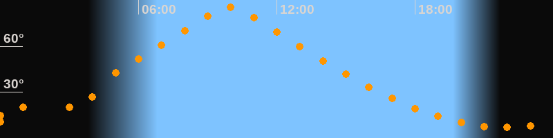 | Höchster Stand (Kulmination) | 09:56 Uhr (h = 85,7°) |