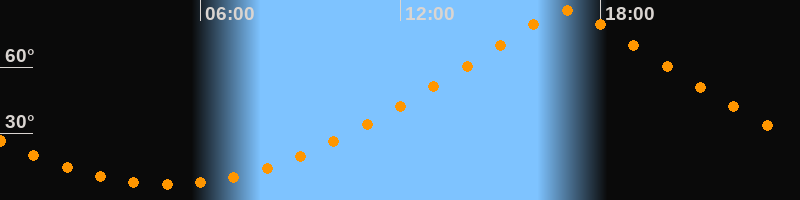 | Höchster Stand (Kulmination) | 16:59 Uhr (h = 85,7°) |