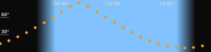 | Höchster Stand (Kulmination) | 09:00 Uhr (h = 85,7°) |