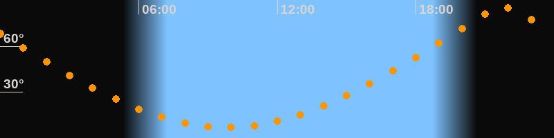 | Höchster Stand (Kulmination) | 21:48 Uhr (h = 85,7°) |