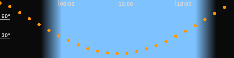 | Höchster Stand (Kulmination) | 00:02 Uhr (h = 85,7°) |