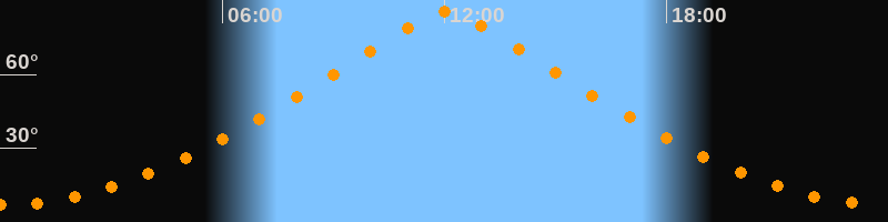 | Höchster Stand (Kulmination) | 12:02 Uhr (h = 85,7°) |