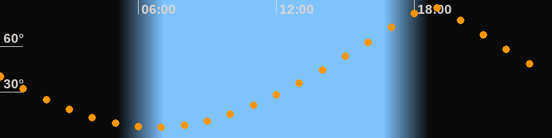 | Höchster Stand (Kulmination) | 18:44 Uhr (h = 85,7°) |