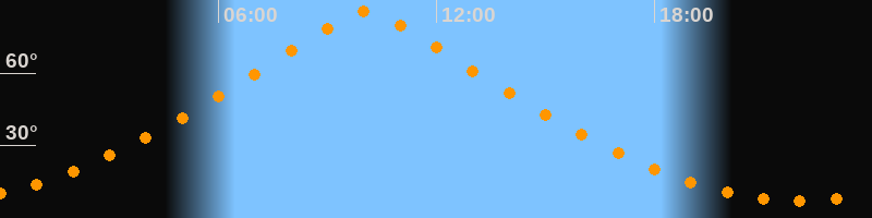 | Höchster Stand (Kulmination) | 10:04 Uhr (h = 85,7°) |